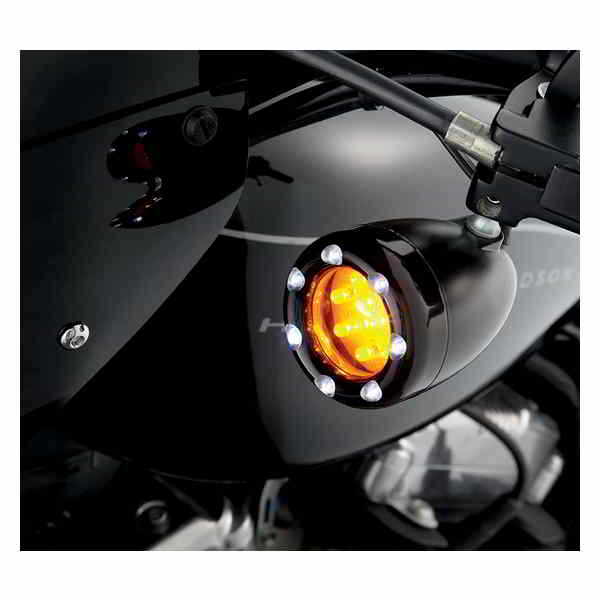 The finest upgrade you can make to factory turn signals; available in dual-filament or single-filament applications Dual-function LED design features a billet aluminum ring with seven exposed LEDs (white amber or red) integrated into the lens to work as running lights and a cluster of LEDs behind the lens for turn signal and or brake light functions; these fit all fro Single-filament design features the fire ring LEDs and the cluster of LEDs behind the lens light as one and are for rear turn signal applications with a light socket for an 1156 type bulb Simple plug-and-play installation Sold in pairs Not DOT compliant. For OEM functionality all front applications require dual-filament kits and rear applications require single filament kits except 09-16 XL883N 07-16 XL1200N/X and 12-16 1200V models which require dual-filament kits. A load equalizer will need to be purchased separately.
