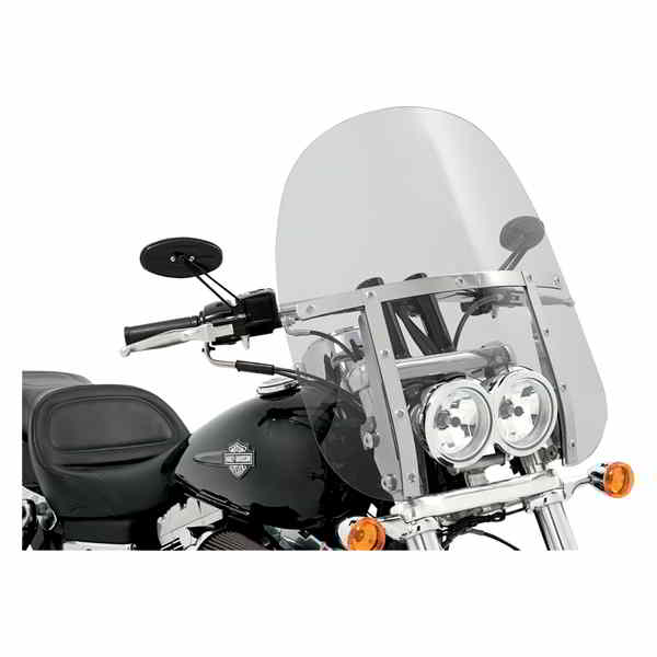 Features traditional American styling with a unique cutout for dual headlight Windshield straps are polished stainless steel with billet aluminum fittings and stainless steel socket-head screws Five standard heights to choose from ? 13 15 17 19 and 21 Available in gradient black and clear Windshield straps are polished stainless steel with billet aluminum fittings and stainless steel socket-head screws No-tool detachable trigger-lock mounting hardware ? sold separately Made from Lucite? for excellent optics and durability Made in the U.S.A.