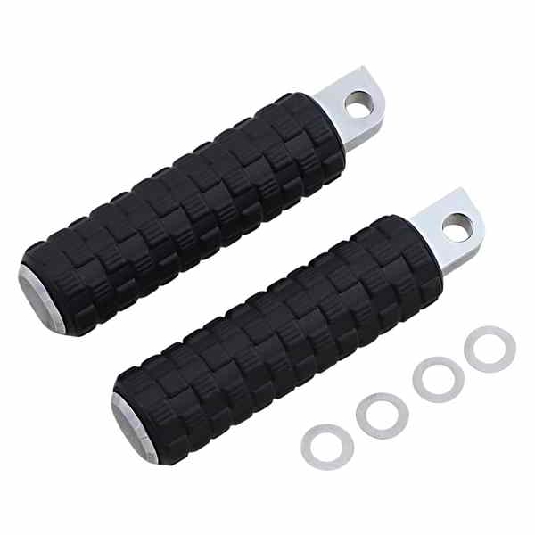 The perfect fusion of traction style and comfort Footpegs are machined from billet aluminum and wrapped in either diamond knurled or linear style rubber for excellent foot traction