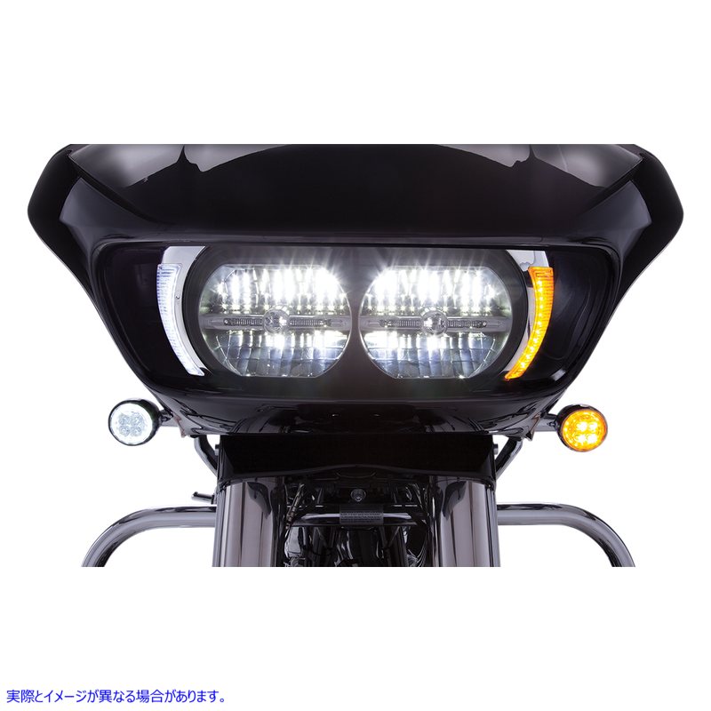 Clear lens with bright white/amber LED lights Replaces dull factory plastic trim Perfectly sculpted to fill the space around the headlight and streamline the look of the fairing Features fang-shaped LED white running lights to set the bike apart from the rest Easy installation on headlight; includes everything needed Plug-and-play into the factory wire harness Easily removed to service the headlight Chrome plated or gloss black to complement popular OEM colors Black bezel is ready to paint for a custom color match