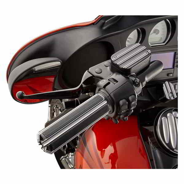 Billet grips bodies are machined to perfection and finished in a black anodized finish 10-Gauge Comfort grips feature linear style rubber for style and comfort Grips have a slightly larger diameter than stock which helps with hand fatigue during long rides Matching floorboards and foot/shift pegs available