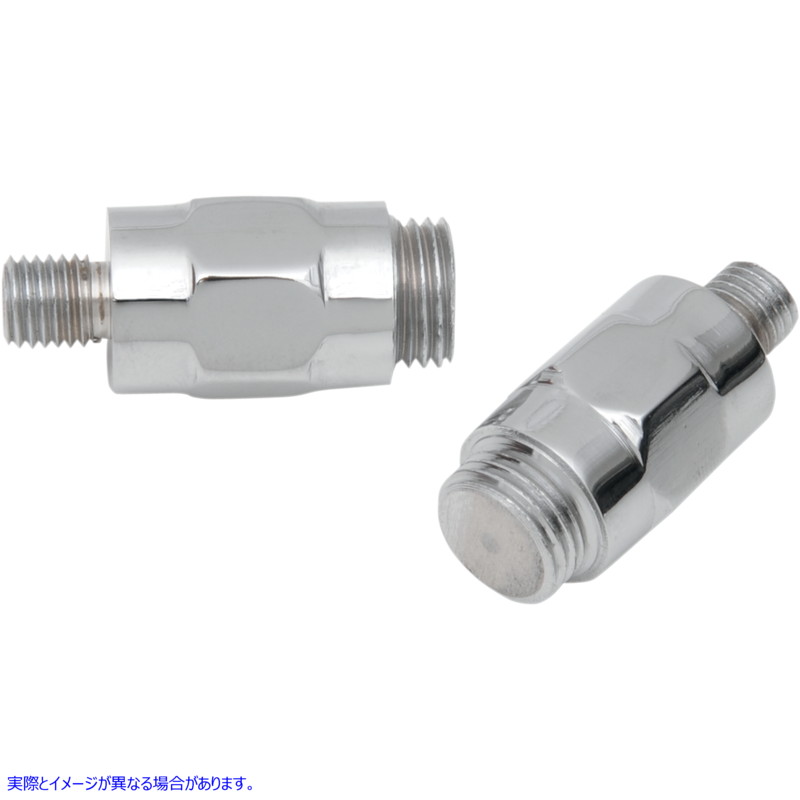 Chrome studs that allow the turn signals to be relocated to the front fork Installs in place of the top or bottom triple tree pinch bolts PART #s 1913-0000 and 2020-0372 have 5/16-24/10mm x 1.5 thread sizes PART #2020-0390 has 5/16 -1/2-20 studs and uses existing front swivels to mount Made in the U.S.A.