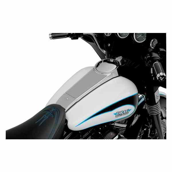 This chrome finished steel panel is used to cover wires and hoses when using a short-nose Road King-style seat Matches the shape of the OEM dash Comes complete with hardware and trim for easy installation Made in the U.S.A.