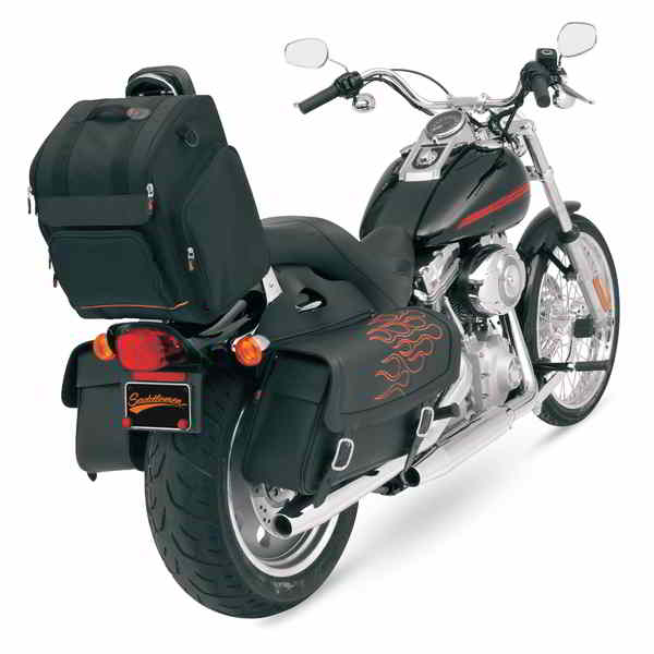 Convenient size full of features easy mounting and incredible value Rugged fully rigid construction holds bag shape even when empty Rugged fully-rigid construction holds bag shape even when empty Fully-adjustable mounting system includes two pull-straps; mount onto sissy bar luggage rack or back seat Zip/hook-and-loop wide top opening with gusseted zip front Top carry handle and backpack/shoulder strap for easy toting off bike Lockable zipper pulls SSR1200 features exterior mesh pockets for easy access to maps and other items; SSR1900 features three exterior zippered pockets for easy access to maps and other items Constructed of UV- water- and weather-resistant 1200-denier SaddleTuff? and SaddleHyde? panels