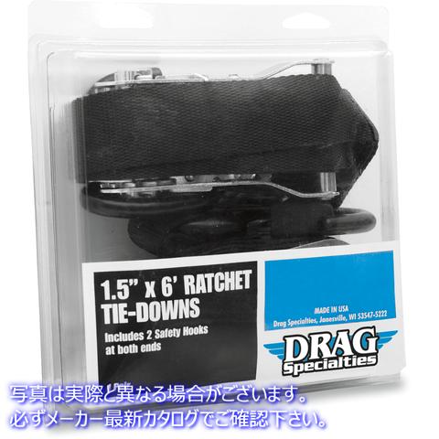 取寄せ ラチェットタイダウン - 1-1/2インチ x 6フィート - ブラック ドラッグスペシャリティーズ Ratchet Tie-Downs - 1-1/2 x 6' - Black 3920-0181 39200181