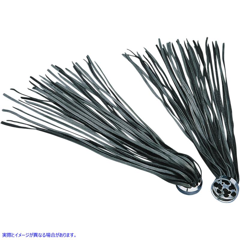 Unique chrome end caps with 12 L leather fringe Slip over OEM rubber grips