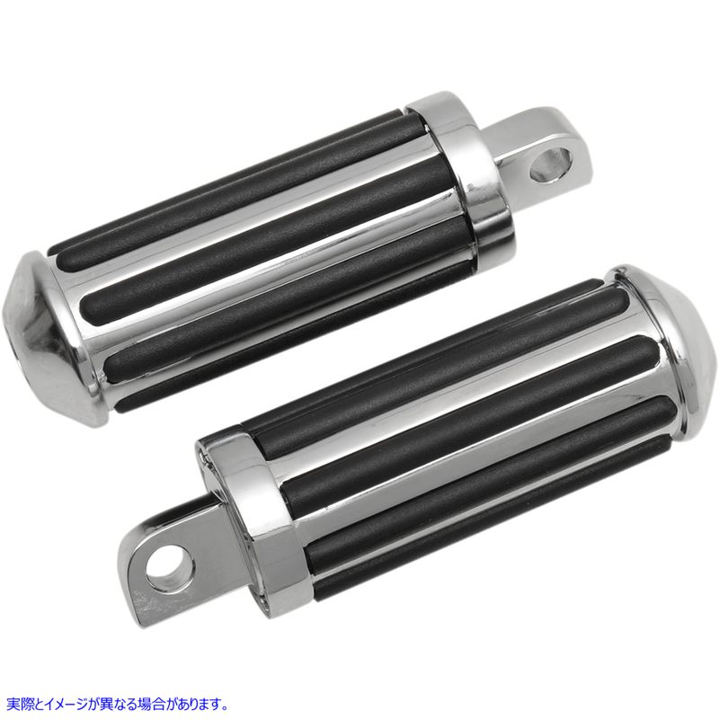 Another unique design from Drag and Arlen Ness Protective rubber rails run completely around diameter for great looks no matter how pegs rotate or pivot Each is precisely die-cast chrome-plated aluminum End cap is super-clean and uses a grade 8 countersunk flat-head socket screw Very tight tolerances ensure a great-quality super strong footpeg assembly Carbon-steel pivot ends are stronger than other die-cast pivots Peg diameter is 1.5 (between a standard large-size driver and the smaller passenger-style pegs); length is 4 without pivot end Shifter peg matches footpegs Sold in pairs with pivot ends installed