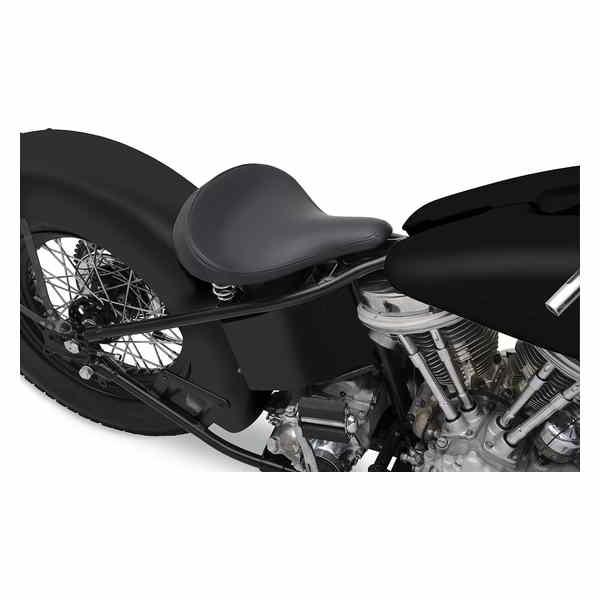 Feature a heavy steel contoured seat base with a black finish Include adjustable front seat hinge and two rear mount studs for springs 1 x 3/16 welded center bar Studs are 5/16 x 7/8 L and 6 center-to-center Constructed of high-density polyurethane molded foam Simple classic look Constructed of 1/2 closed-cell foam Low-profile for that Bobber look Made in the U.S.A.