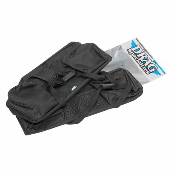 No need for saddlebag organizers; liners feature three storage compartments on top with zipper closures Constructed of heavyweight polyester fabric with a PVC internal coating Center compartment is made of a see-through mesh for locating items quickly Zippers on the outer compartments wrap around two sides for easy access The zipper on the main liners wraps around three sides the lid will flip up creating an open access for EZ loading and locating items Each liner has two handles that can be joined together with hook-and-loop material for easy carrying Sold in pairs Made in the U.S.A.
