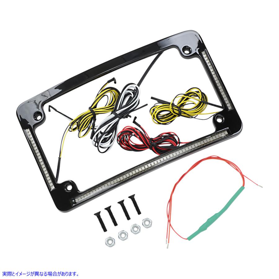 License plate frame with six bright white license plate LEDs Flushmount run brake and turn signal LEDs 45 super bright flushmount dual-intensity red running/brake LEDs 20 super bright flushmount amber turn signal LEDs per side Frame dimensions: 7-1/4 L x 4-1/4 W Mounting holes center-to-center: 5-3/4 x 2-13/16 Radius has a 12° curve Available in black and chrome finishes Mounting hardware included