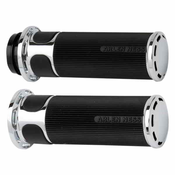 Each grip design features excellent traction for your hands Billet aluminum accents are intricately machined and later finished in flawless chrome or black anodizing Slot Track design features 1-1/4 billet aluminum inner collars with an air cushion rubber thumb pad linear knurled rubber grips and slotted billet aluminum end caps All grips come with throttle sleeve installed and include grip glue and simple to follow instructions Matching footpegs and shifter pegs are available separately