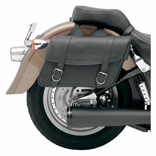 Stylish dual-strap design with heavy-duty chrome-plated buckles Box-style lid keeps contents secure Stylish dual-strap design with heavy-duty chrome-plated buckles Box-style lid keeps contents secure Adjustable laced yoke construction for a perfect fit on most popular cruisers Rigid plastic backs and reinforced inner panels help maintain bag shape even when empty; bag supports recommended Large turn signal cutouts in yoke prevent need for turn signal relocation on some models NOTE: Matching seats available; see SEATS & SISSY BARS section.