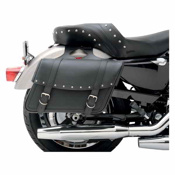 Stylish dual-strap design with heavy-duty chrome-plated buckles Box-style lid keeps contents secure Stylish dual-strap design with heavy-duty chrome-plated buckles Box-style lid keeps contents secure Adjustable laced yoke construction for a perfect fit on most popular cruisers Rigid plastic backs and reinforced inner panels help maintain bag shape even when empty; bag supports recommended Large turn signal cutouts in yoke prevent need for turn signal relocation on some models NOTE: Matching seats available; see SEATS & SISSY BARS section.