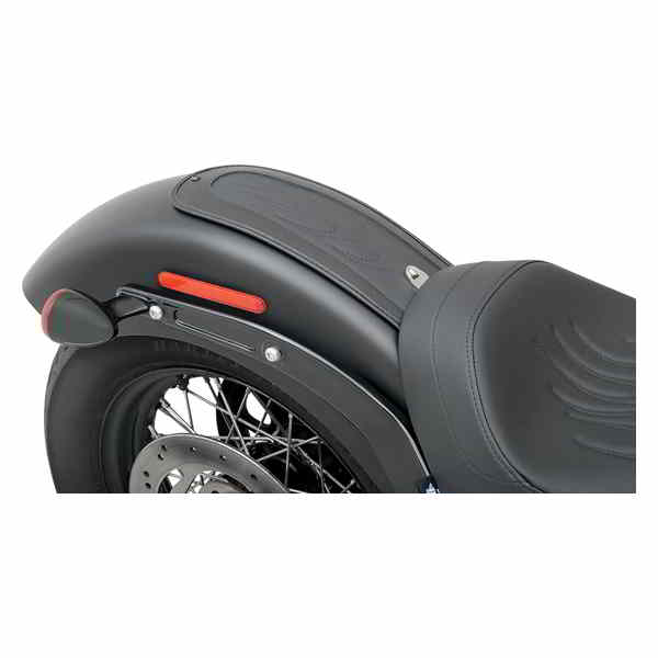Features automotive-grade vinyl or faux exotic centers with leather perimeters and a finished edge Felt liner to protect paint Include black zinc washer and screw to complete installation Comes with a 5/16 punch for adapting to any forward hold location Rear mount hole is pre-punched Includes hook-and-loop fastener for positioning front if needed Hugs fender perfectly Designed to match Drag Specialties solo seats Will work with most OEM and accessory seats