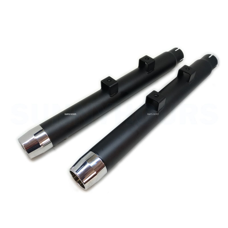 マットブラック ストレート スリップオン マフラー 2014-2020 スポーツスター + クローム ビレット エンドキャップ 2.25 MBCR 黒 [PARTS DEPOT pdkrsh 30-0456-bc-sh 4580443499969 ]